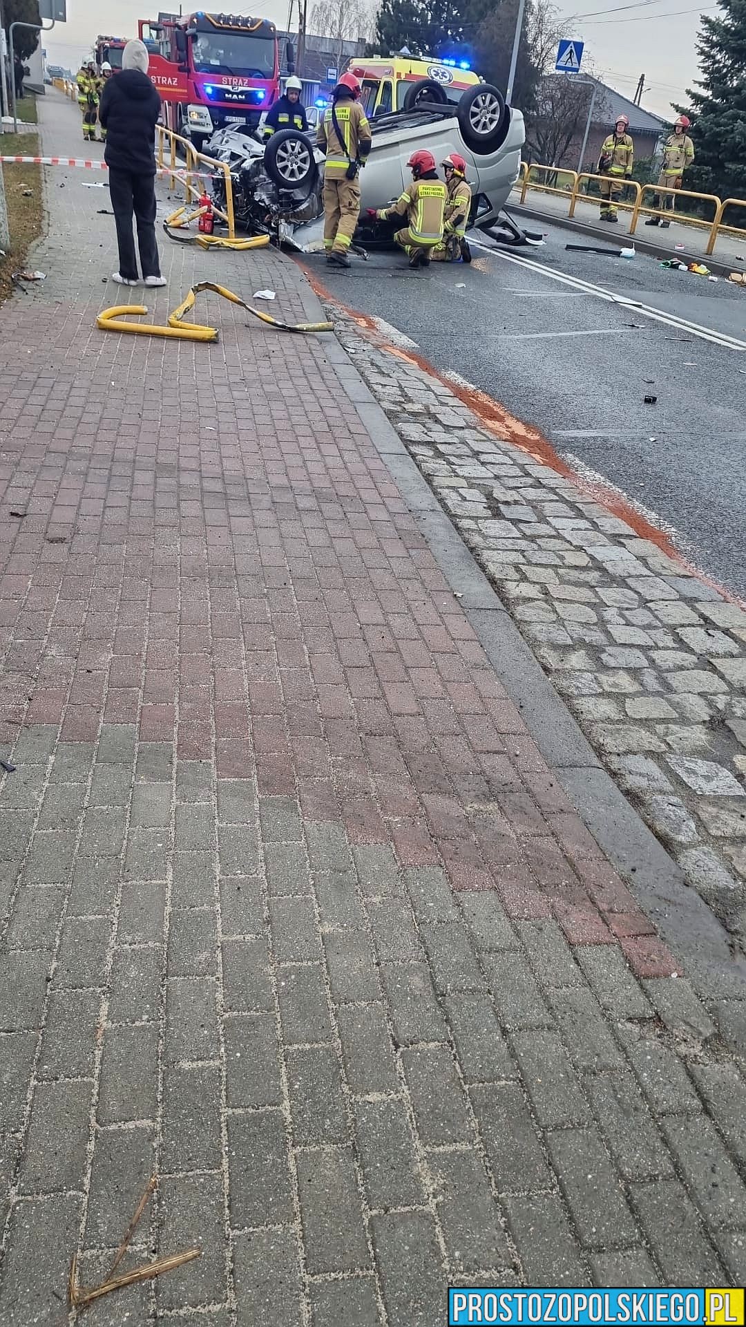 W wyniku zdarzenia droga jest całkowicie zablokowana. Na miejscu prowadzone są intensywne działania służb ratunkowych.