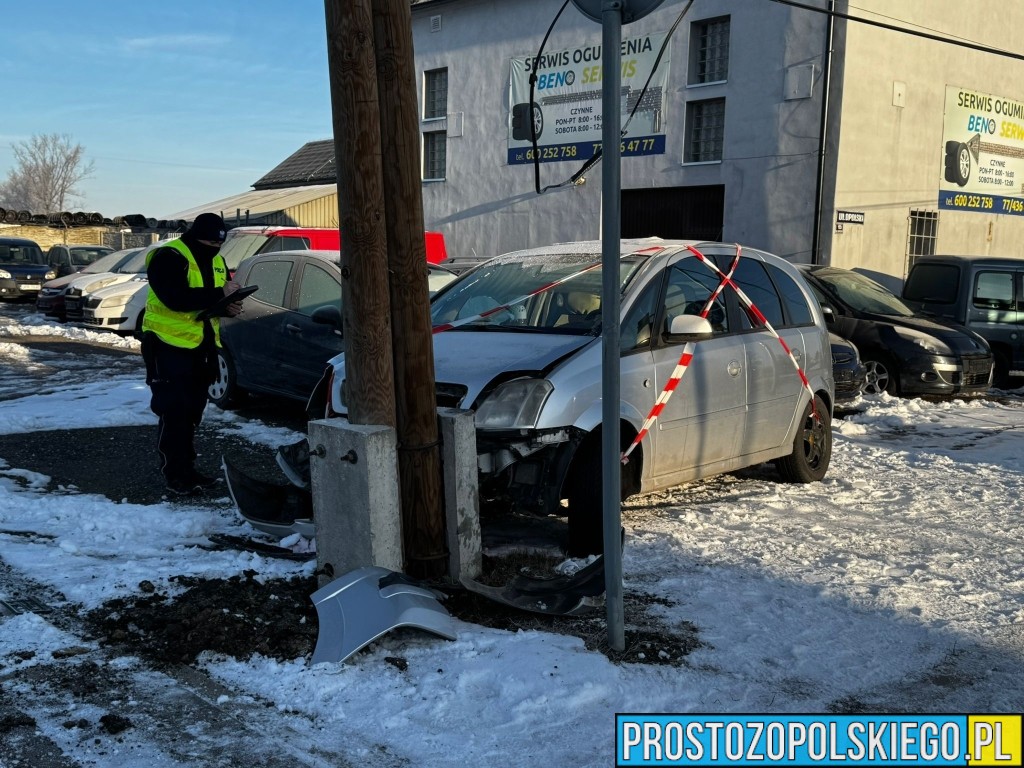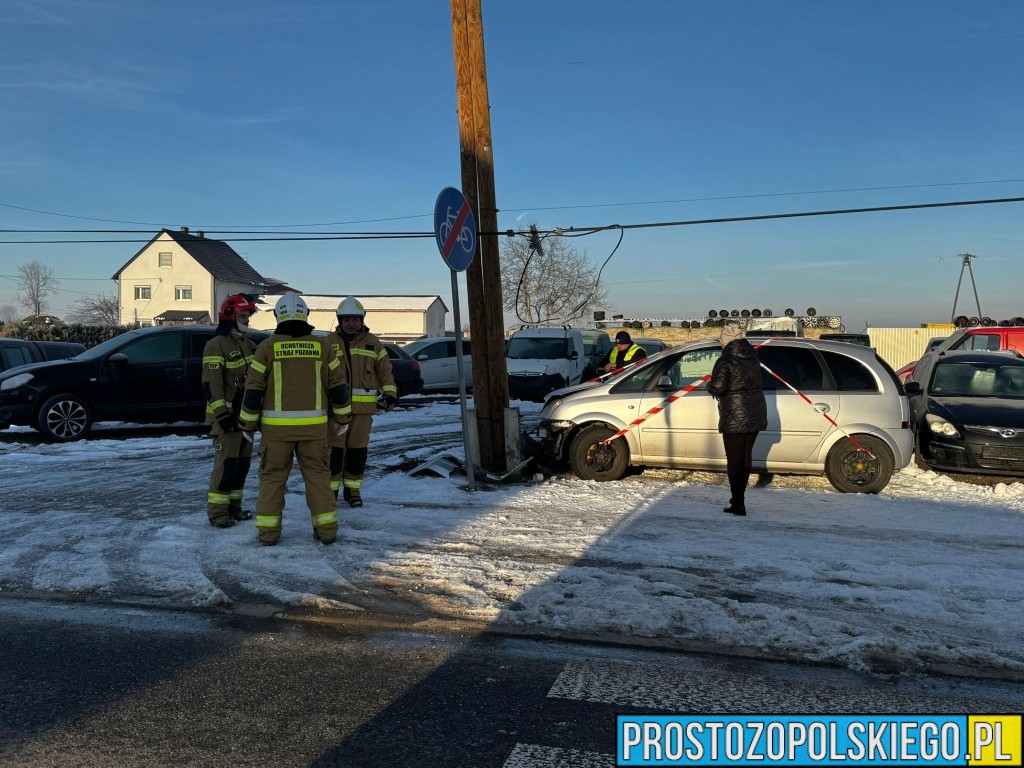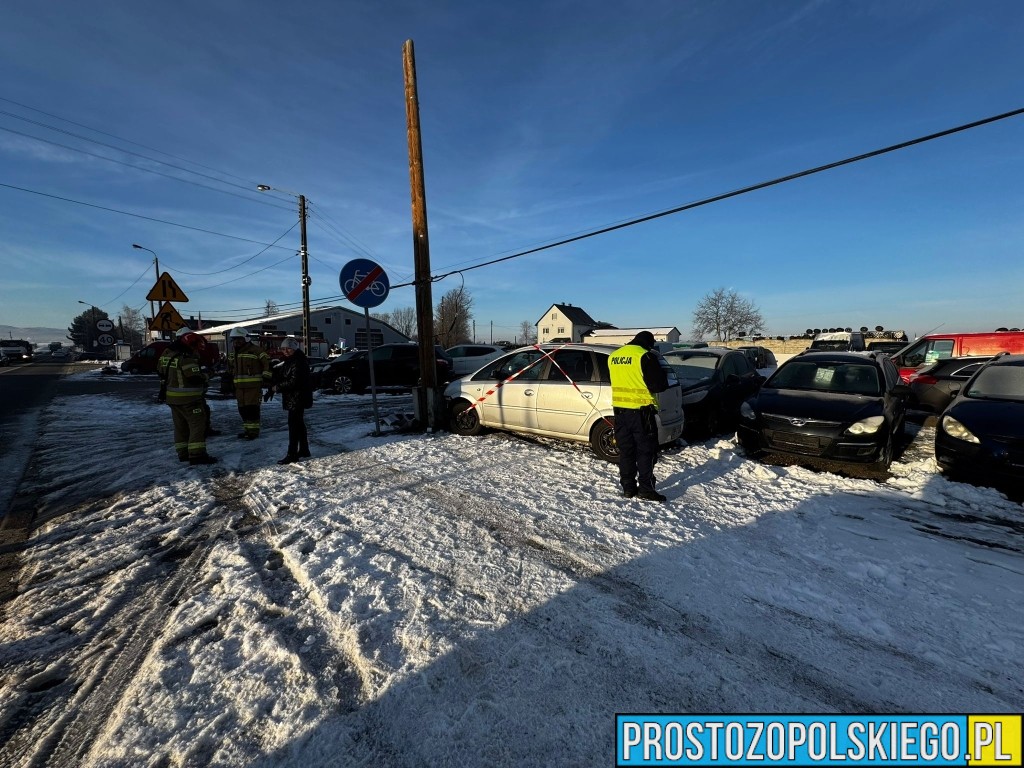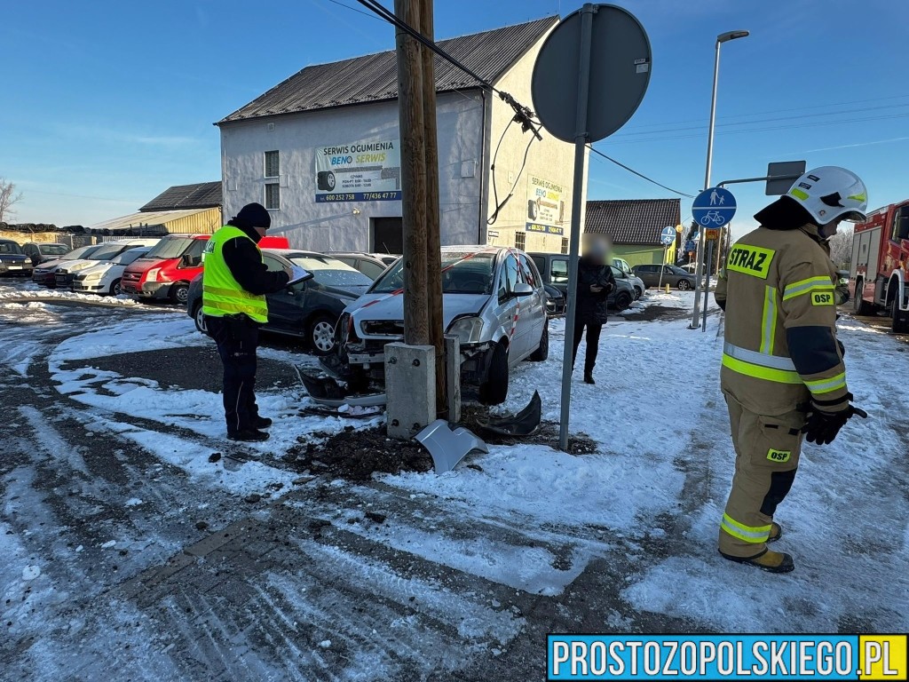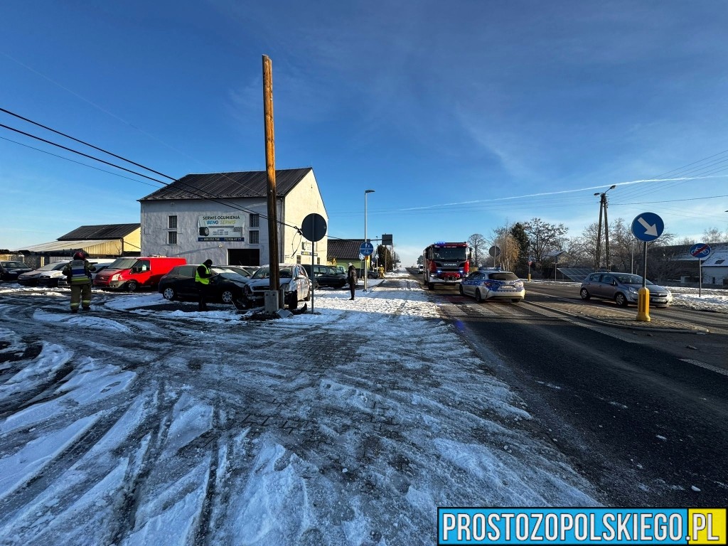W wyniku zderzenia ranna została jedna osoba, którą Zespół Ratownictwa Medycznego przetransportował do szpitala. Według wstępnych ustaleń doszło do zderzenia dwóch samochodów marki Opel, z których jeden po uderzeniu wypadł z drogi i uderzył w przydrożny słup.