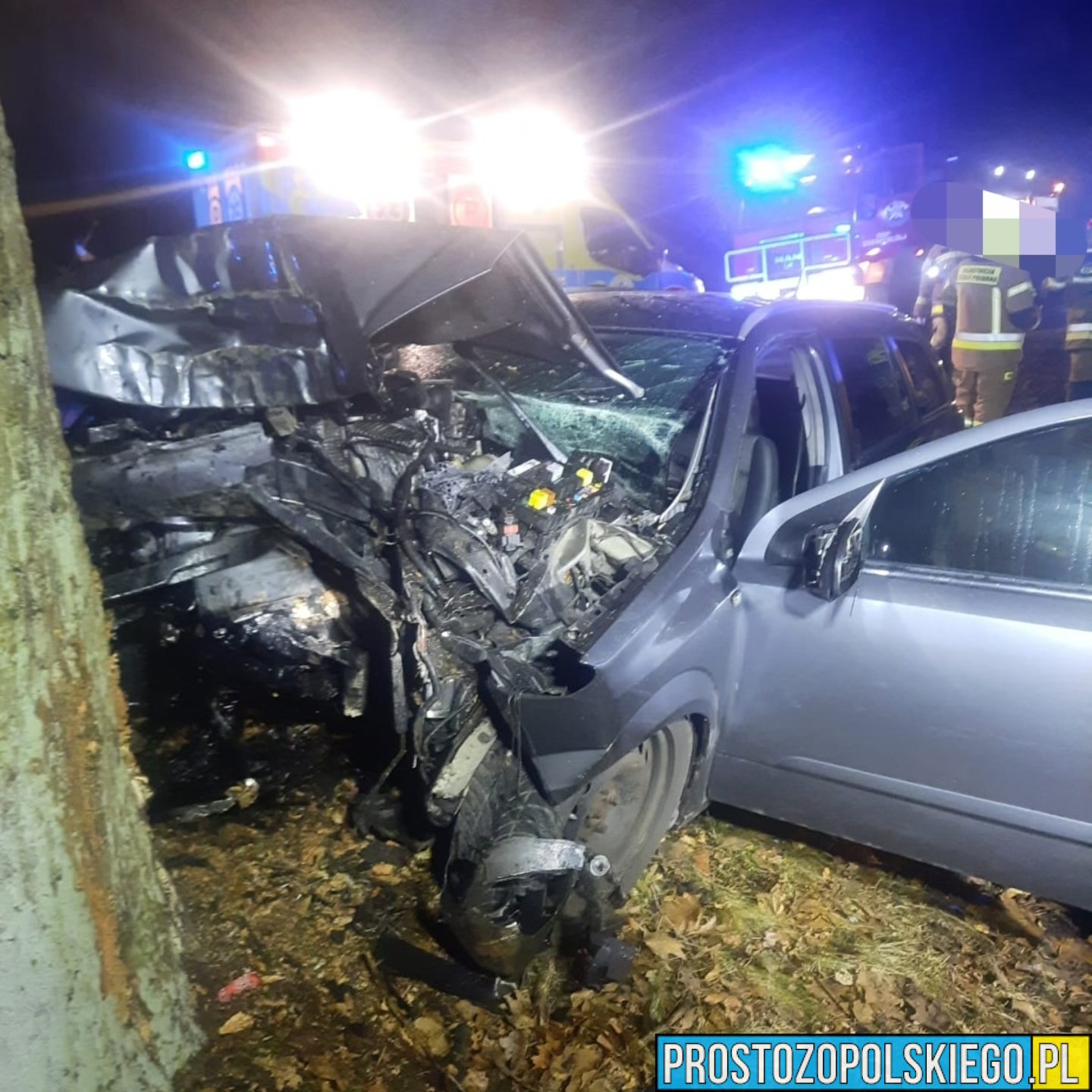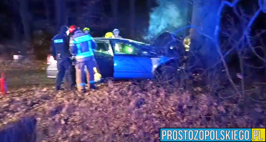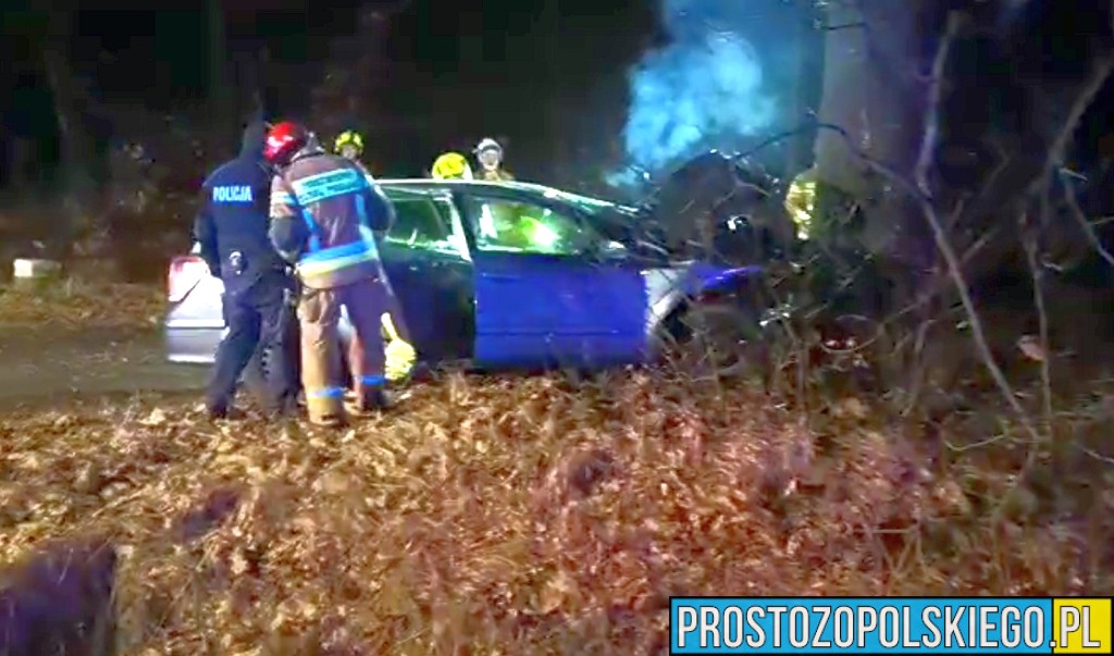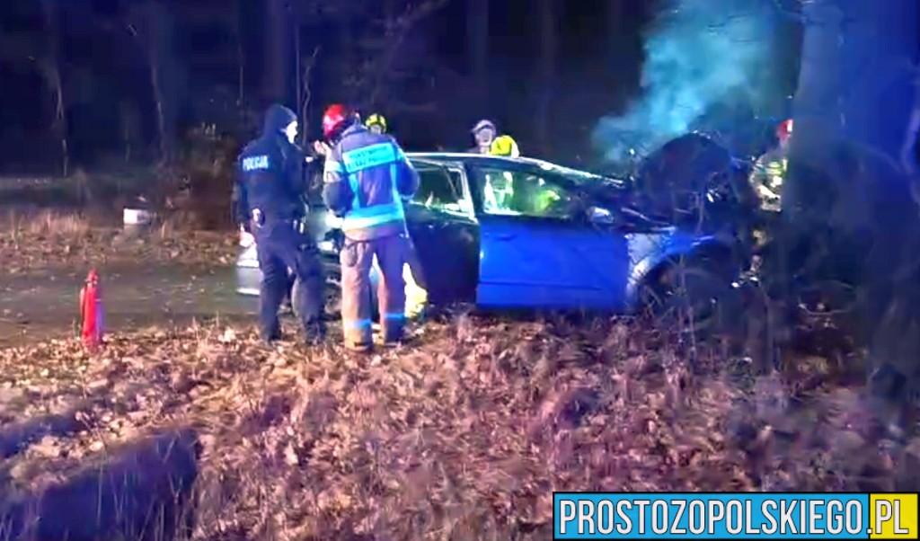 Ze wstępnych ustaleń wynika, że kierujący samochodem osobowym stracił panowanie nad pojazdem, zjechał z drogi i uderzył w przydrożne drzewo. Siła uderzenia była na tyle duża, że kierowca został uwięziony we wraku pojazdu.