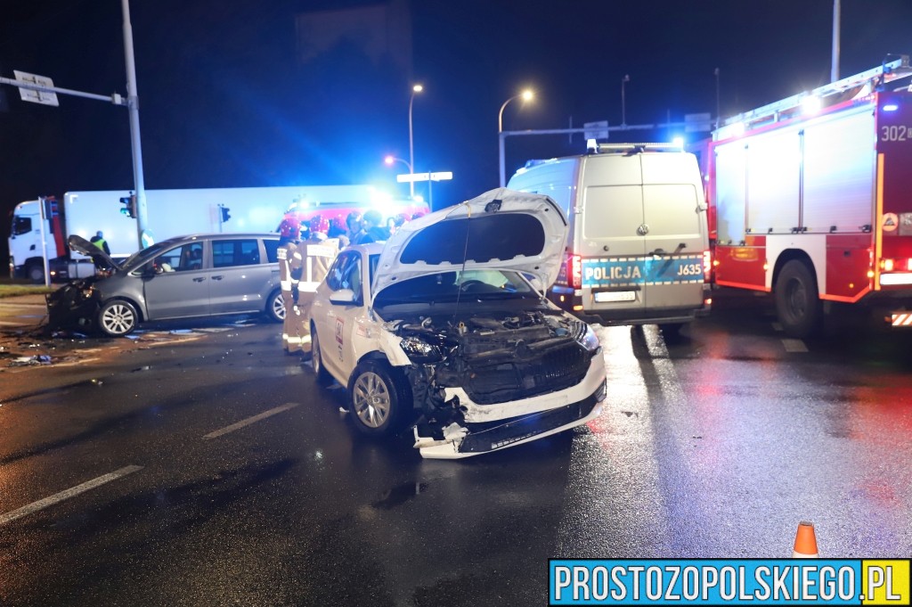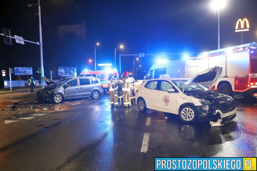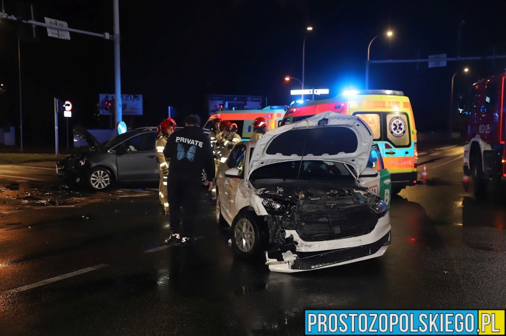 W środę, 22 października, o godzinie 21:30 służby ratunkowe otrzymały zgłoszenie o wypadku drogowym na skrzyżowaniu ulic Domańskiego i Wrocławskiej w Opolu. Ze wstępnych ustaleń wynika, że na środku skrzyżowania doszło do zderzenia seata z taksówką marki Toyota.