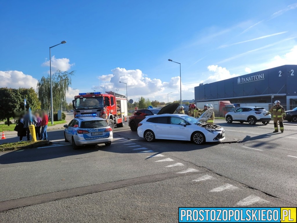 W środę 15 października o godzinie 14:22 służby ratunkowe otrzymały zgłoszenie o wypadku drogowym przy wyjeździe z Makro na ulicy Partyzanckiej w Opolu. Doszło tam do zderzenia dwóch samochodów osobowych – audi i toyoty.