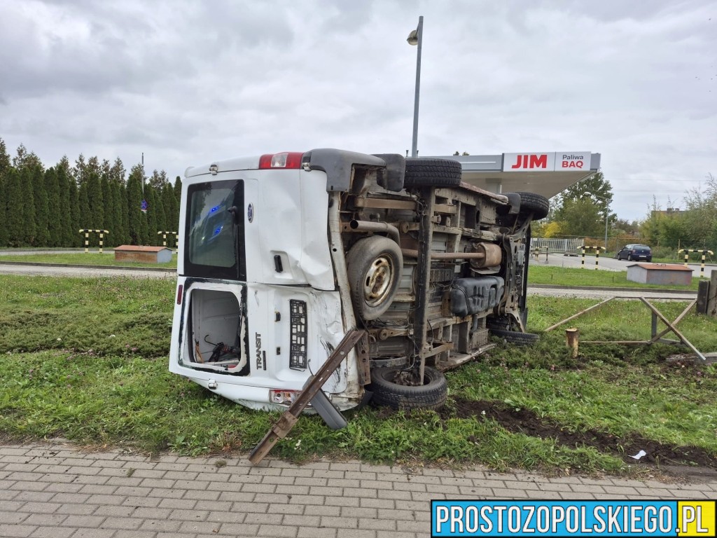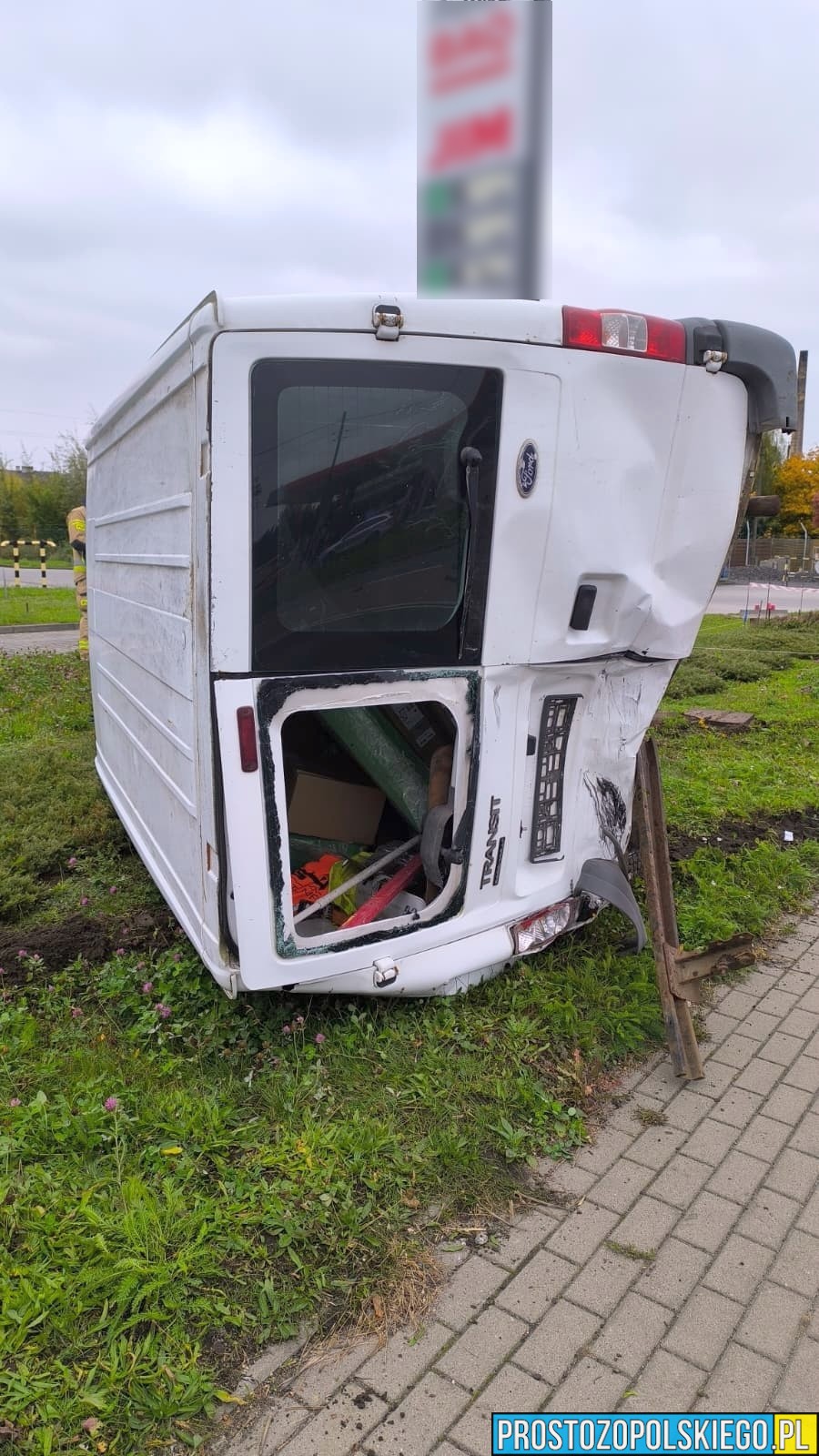Ze wstępnych ustaleń policjantów wynika, że 40-letni kierowca samochodu osobowego marki Audi najechał na bus marki Ford, którym kierował 43-letni mężczyzna. W wyniku zderzenia bus przewrócił się na bok.
