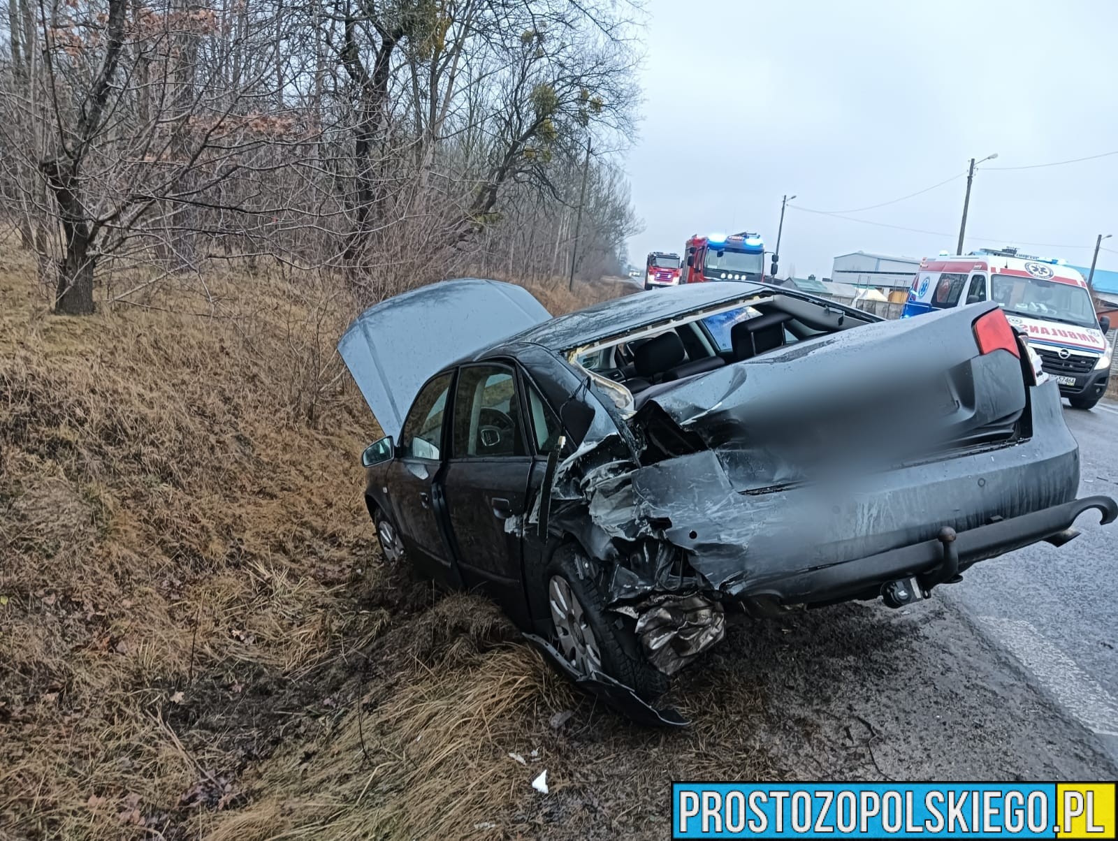 Audi, na skutek siły uderzenia, wjechało do rowu.