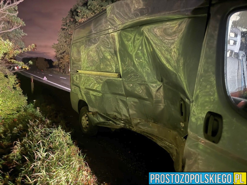 Wypadek w Dąbrowie na DK46. Zderzenie busa z samochodem osobowym – droga była zablokowana
