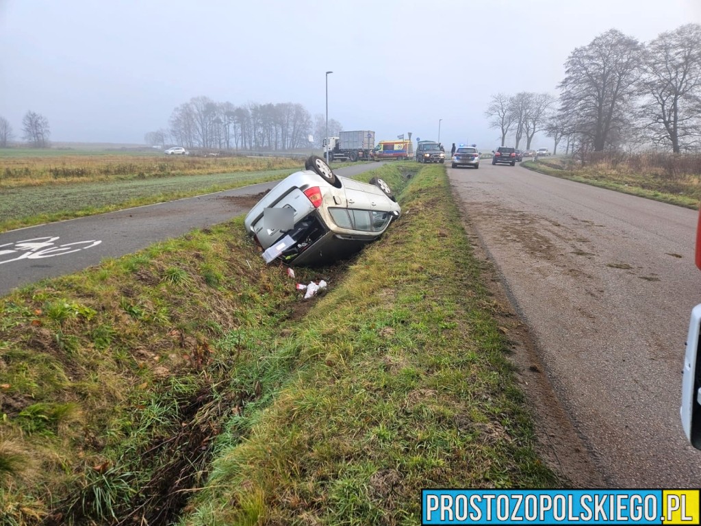 W środę rano, o godzinie 8:32, opolskie służby ratunkowe otrzymały zgłoszenie z numeru alarmowego 112 dotyczące wypadku na ulicy Opolskiej, przy wjeździe do miejscowości Kotórz Mały. Samochód osobowy marki Toyota dachował na drodze powiatowej łączącej Kotórz Mały z Turawą.