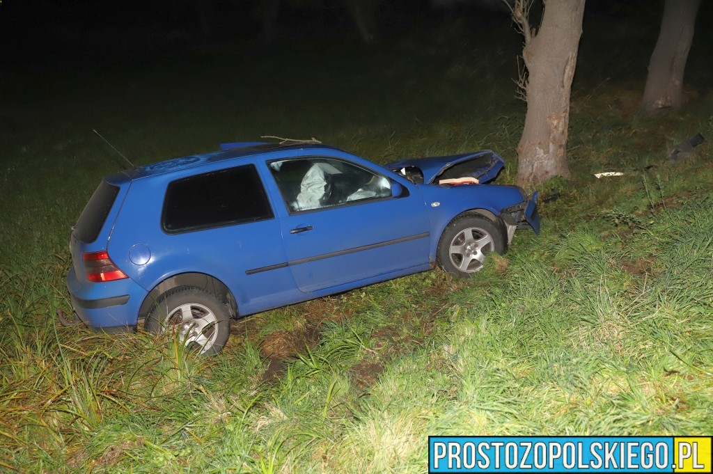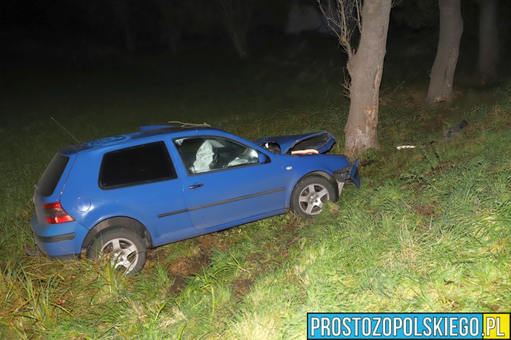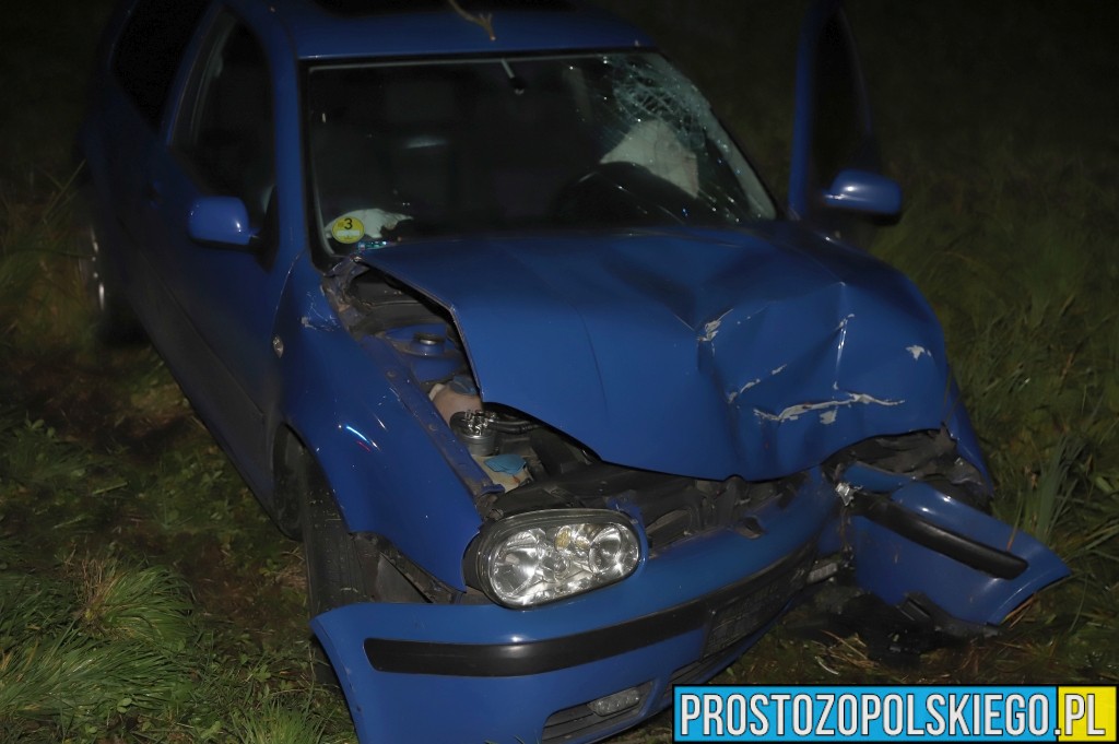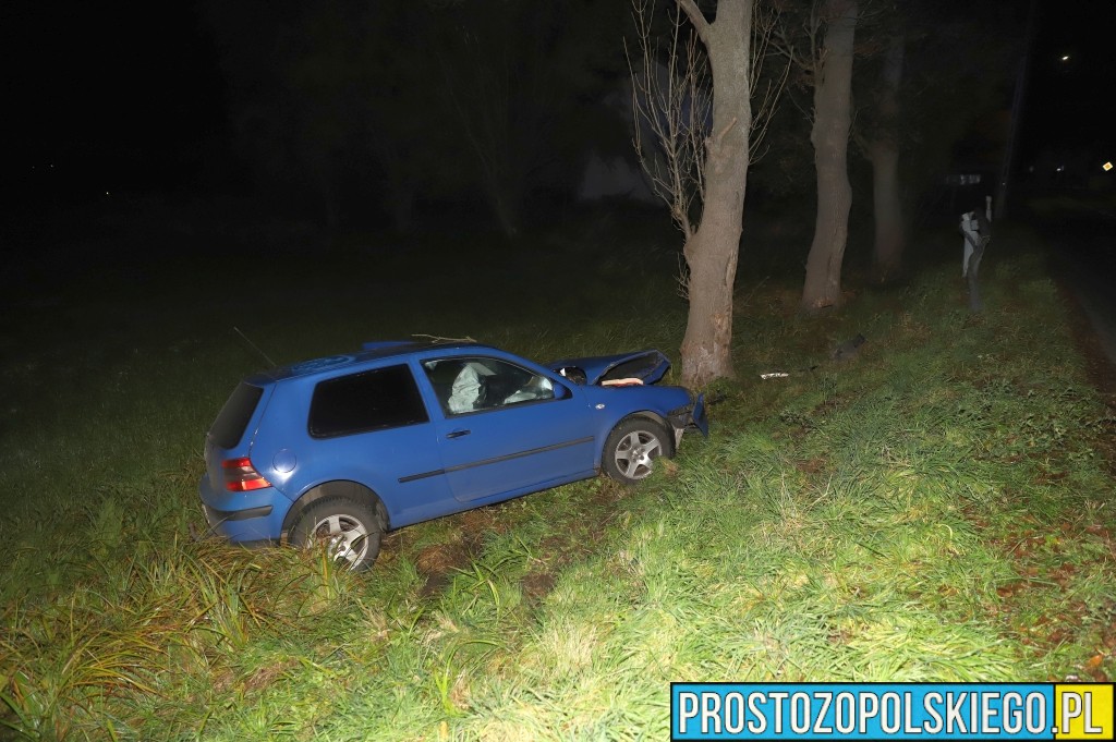 Ze wstępnych ustaleń policjantów wynika, że kierujący samochodem osobowym Volkswagen Golf stracił panowanie nad pojazdem na łuku drogi, zjechał na przeciwny pas ruchu, wpadł do rowu i uderzył w drzewo.