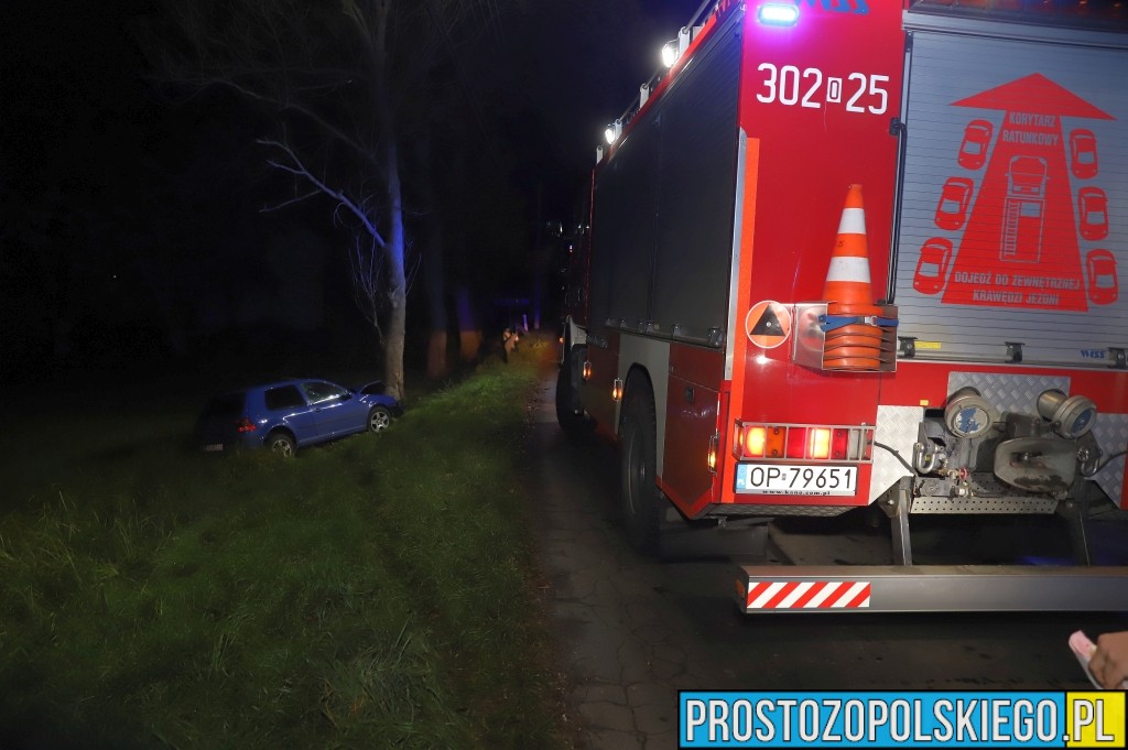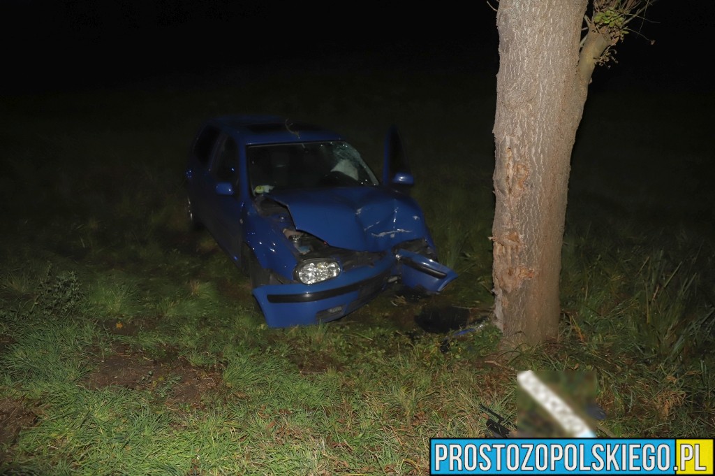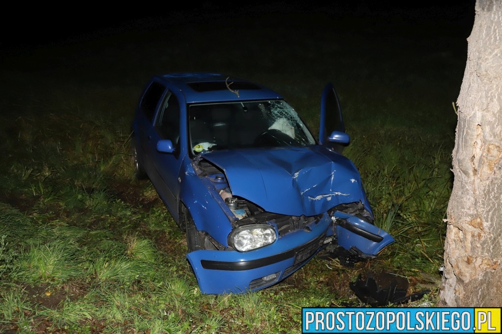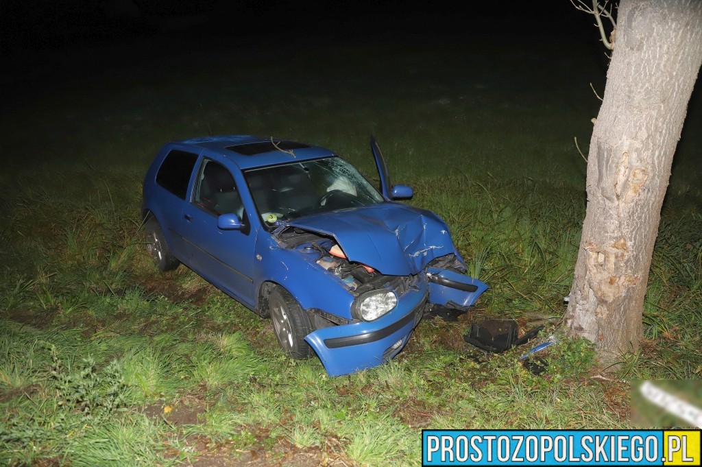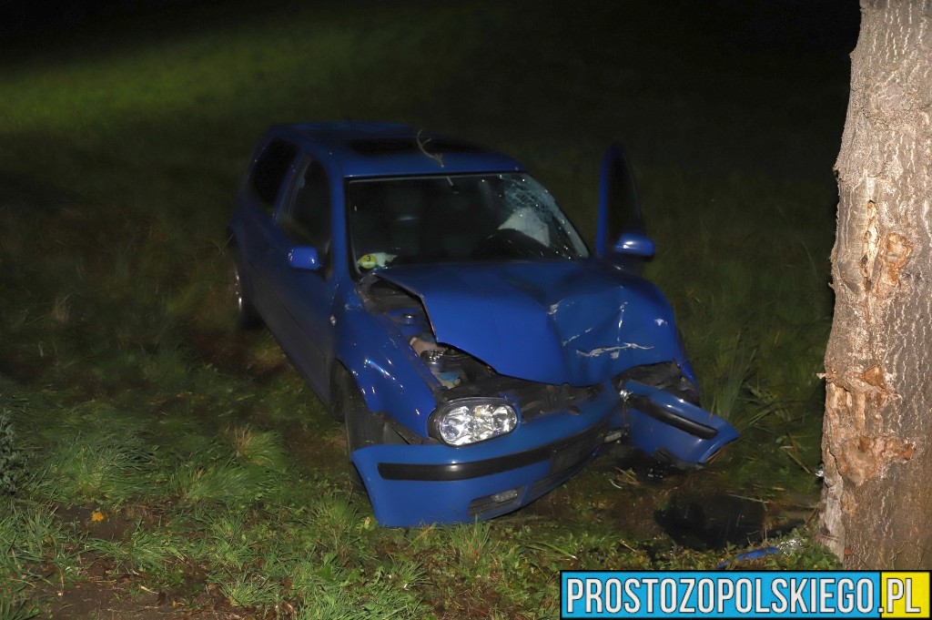 Ze wstępnych ustaleń policjantów wynika, że kierujący samochodem osobowym Volkswagen Golf stracił panowanie nad pojazdem na łuku drogi, zjechał na przeciwny pas ruchu, wpadł do rowu i uderzył w drzewo.