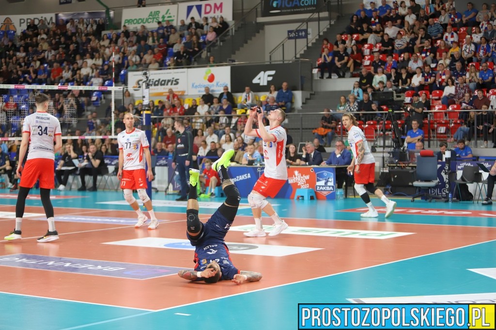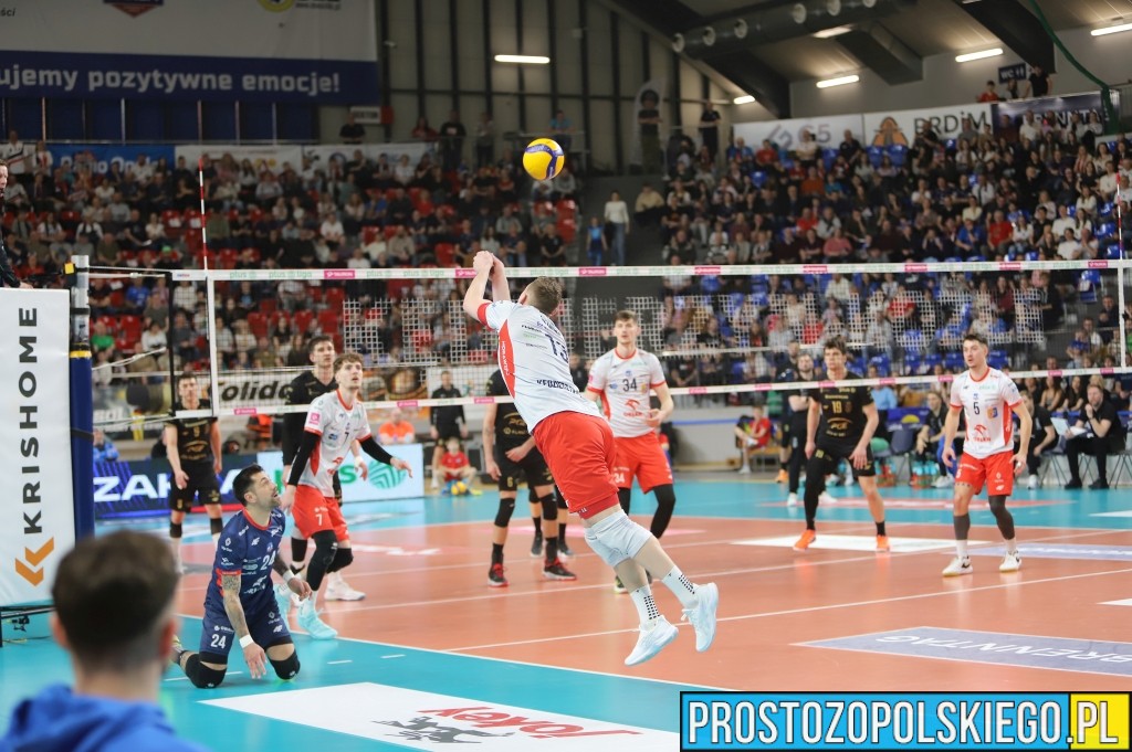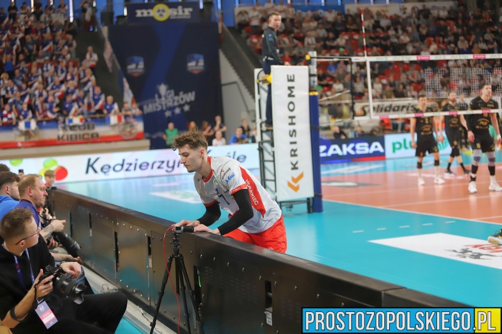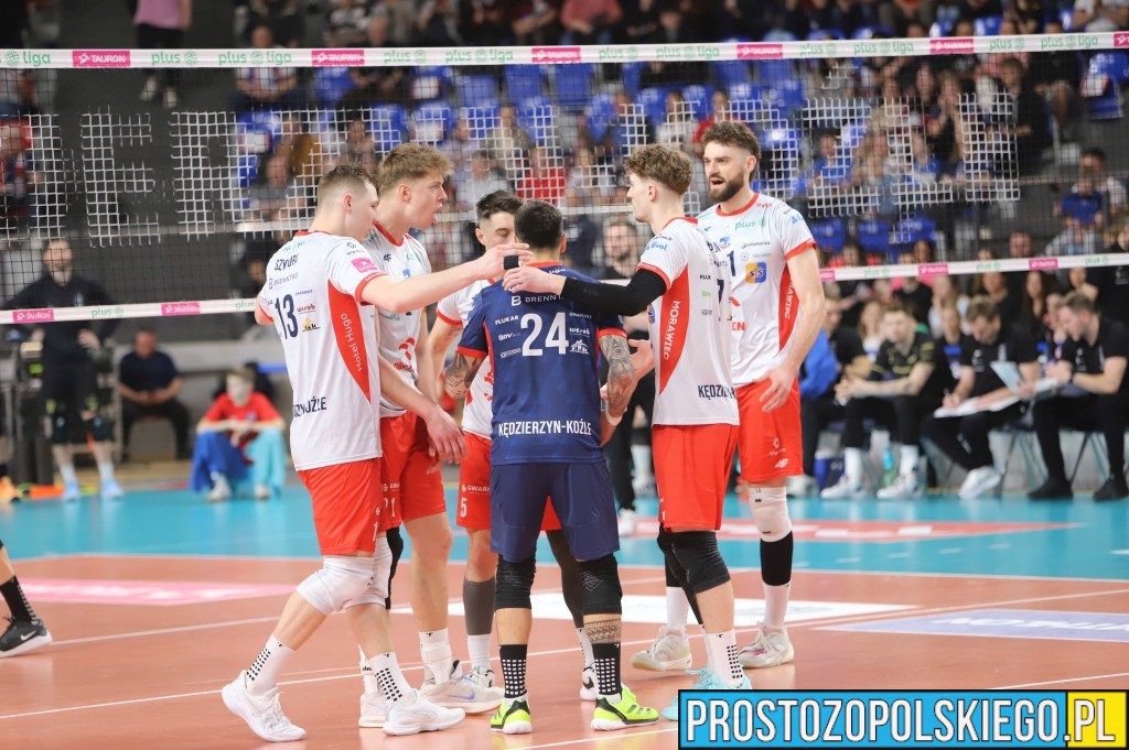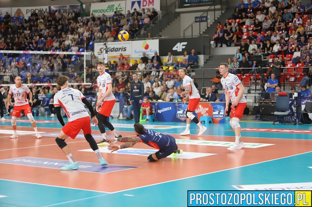 Trzeci seta, na szczęście tylko początkowo, przypominał odsłonę premierową. Niewygodne ustawienie i problemy z przebiciem się przez blok rywala dały przewagę gościom (1:4). Po przerwie, o którą poprosił Andrea Giani sytuacja się uspokoiła, kolejne ataki Rychlickiego z Urbanowiczem pomogły zniwelować dystans, a po bloku w wykonaniu Rafała Szymury byliśmy o krok od wyrównania (9:10). Zwrot akcji nastąpi po przekroczeniu progu 10. Punktu. As serwisowy Kamila Rychlickiego oraz kolejne bloki w wykonaniu kędzierzynian zrobiły swoje (13:11). Przewaga naszego zespołu wzrosła do trzech punktów po autowym ataku Bartosza Bednorza (18:15). W końcówce seta dodatkowa dawkę emocji dała nam seria rywali zwieńczona asem serwisowym Bartosza Bednorza (20:19). Nerwy uspokoił kolejny pewny atak Igora Grobelnego, kolejne kontry kończył Kamil Rychlicki i przy stanie 24:20 mieliśmy pierwszą piłkę setową. Tej szansy nasz zespół nie zmarnował, w kluczowej akcji piłkę w aut posłał Gomułka (25:20).