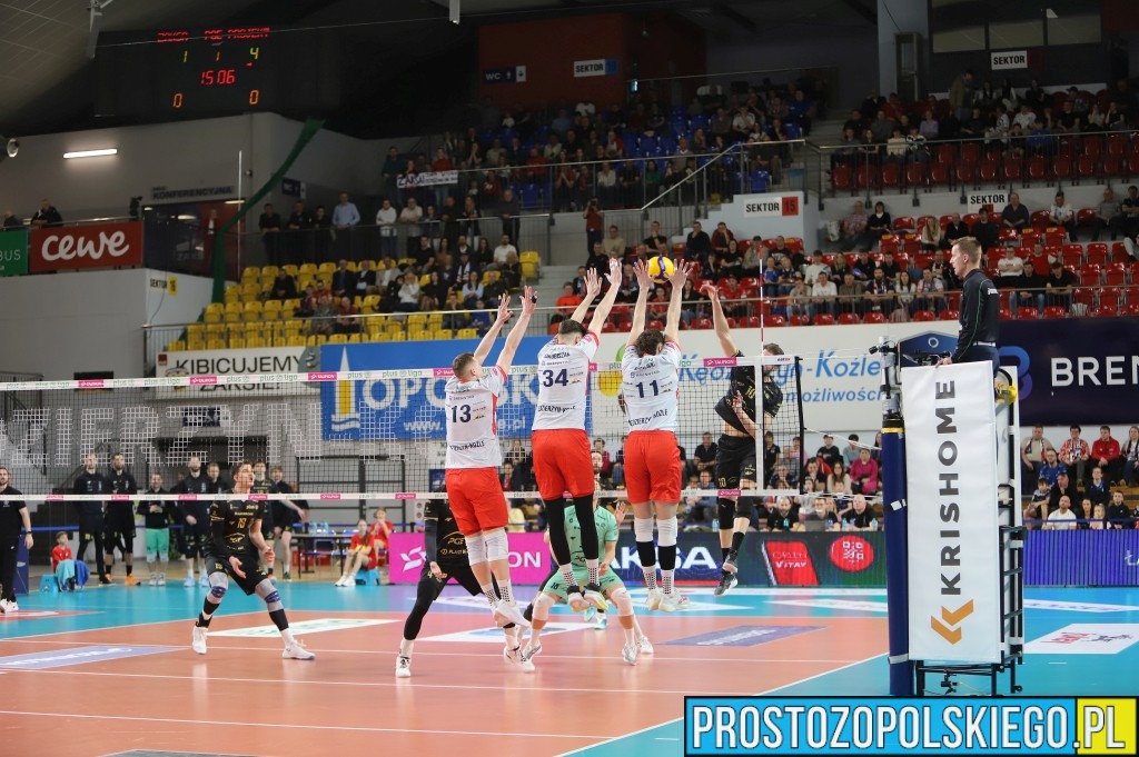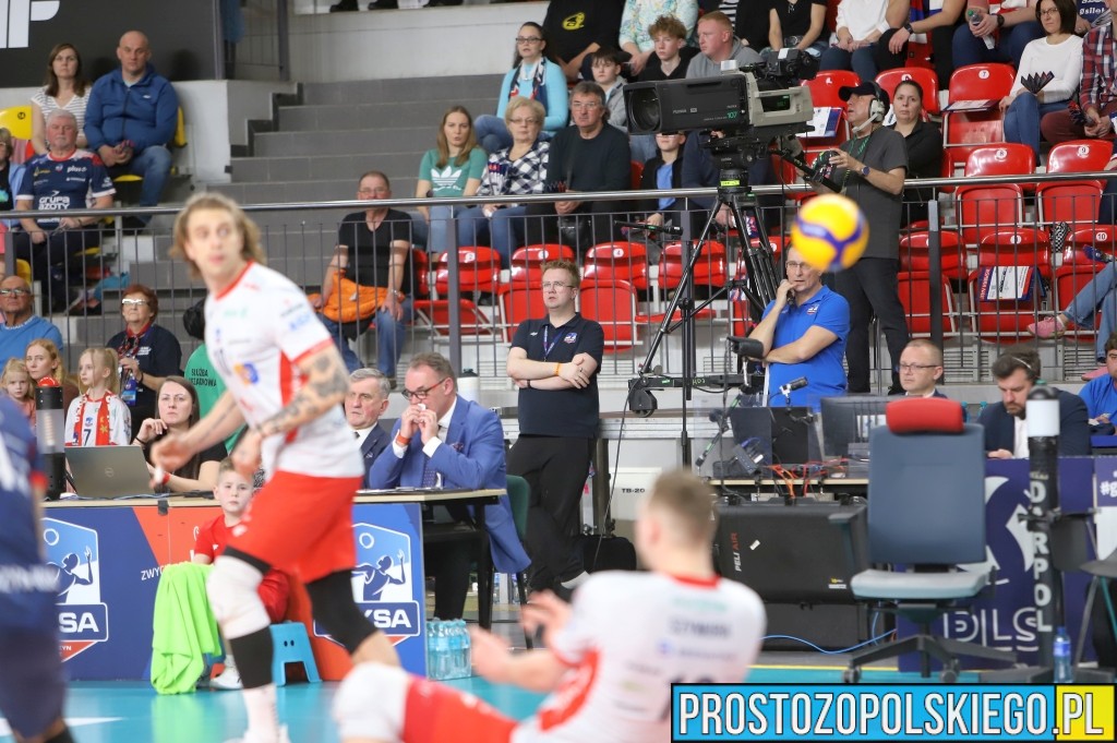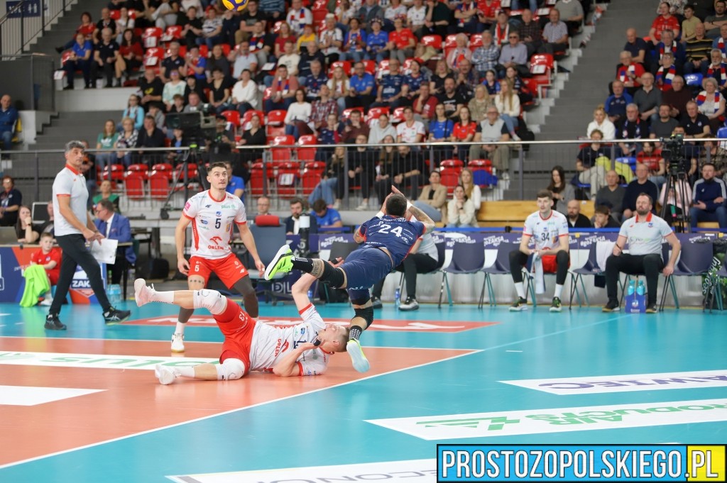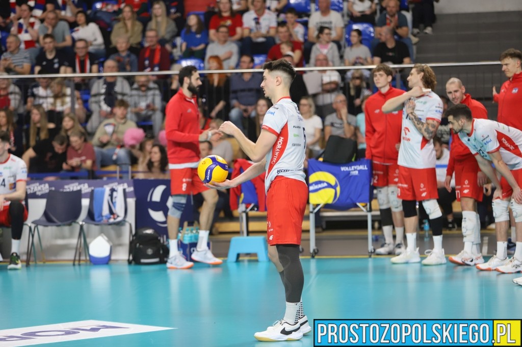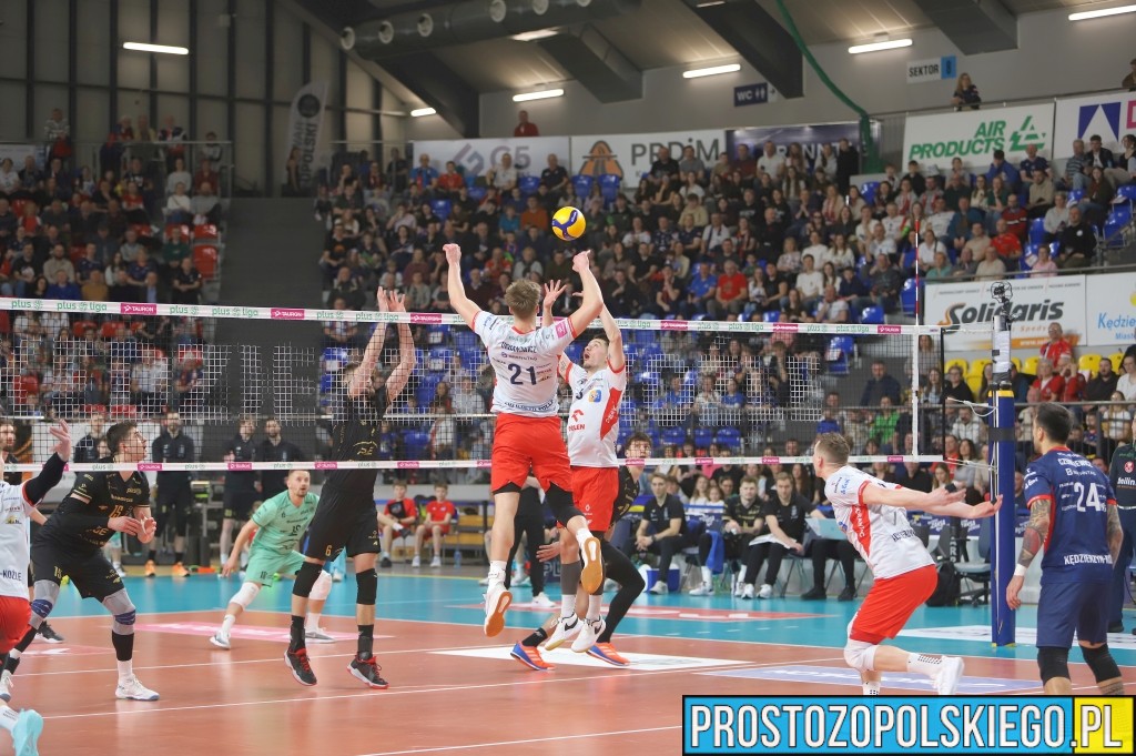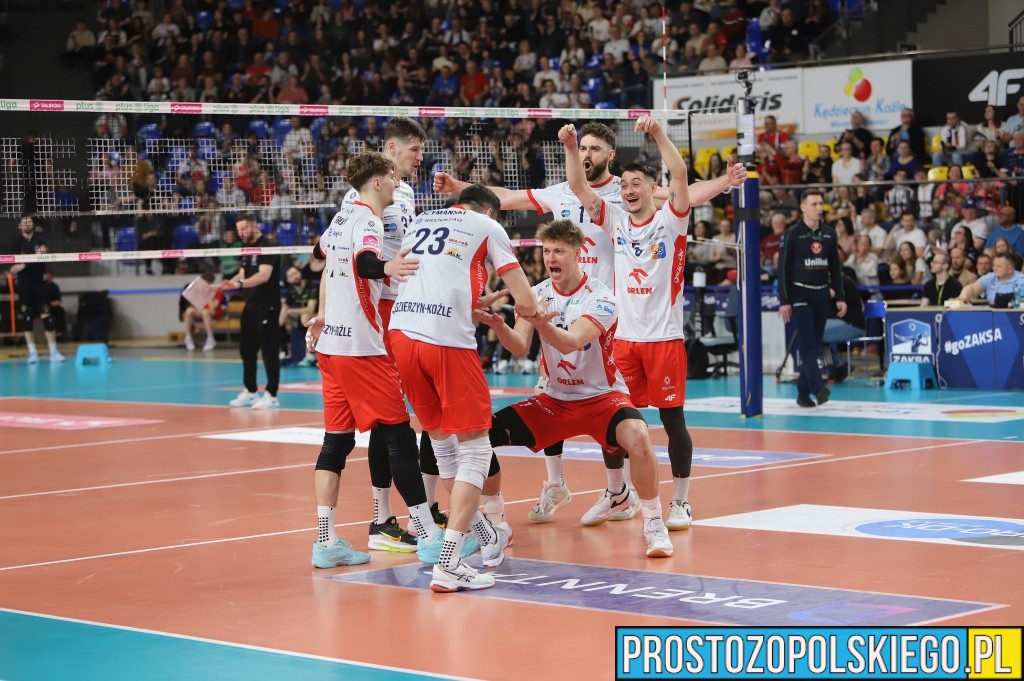 Trzeci seta, na szczęście tylko początkowo, przypominał odsłonę premierową. Niewygodne ustawienie i problemy z przebiciem się przez blok rywala dały przewagę gościom (1:4). Po przerwie, o którą poprosił Andrea Giani sytuacja się uspokoiła, kolejne ataki Rychlickiego z Urbanowiczem pomogły zniwelować dystans, a po bloku w wykonaniu Rafała Szymury byliśmy o krok od wyrównania (9:10). Zwrot akcji nastąpi po przekroczeniu progu 10. Punktu. As serwisowy Kamila Rychlickiego oraz kolejne bloki w wykonaniu kędzierzynian zrobiły swoje (13:11). Przewaga naszego zespołu wzrosła do trzech punktów po autowym ataku Bartosza Bednorza (18:15). W końcówce seta dodatkowa dawkę emocji dała nam seria rywali zwieńczona asem serwisowym Bartosza Bednorza (20:19). Nerwy uspokoił kolejny pewny atak Igora Grobelnego, kolejne kontry kończył Kamil Rychlicki i przy stanie 24:20 mieliśmy pierwszą piłkę setową. Tej szansy nasz zespół nie zmarnował, w kluczowej akcji piłkę w aut posłał Gomułka (25:20).
