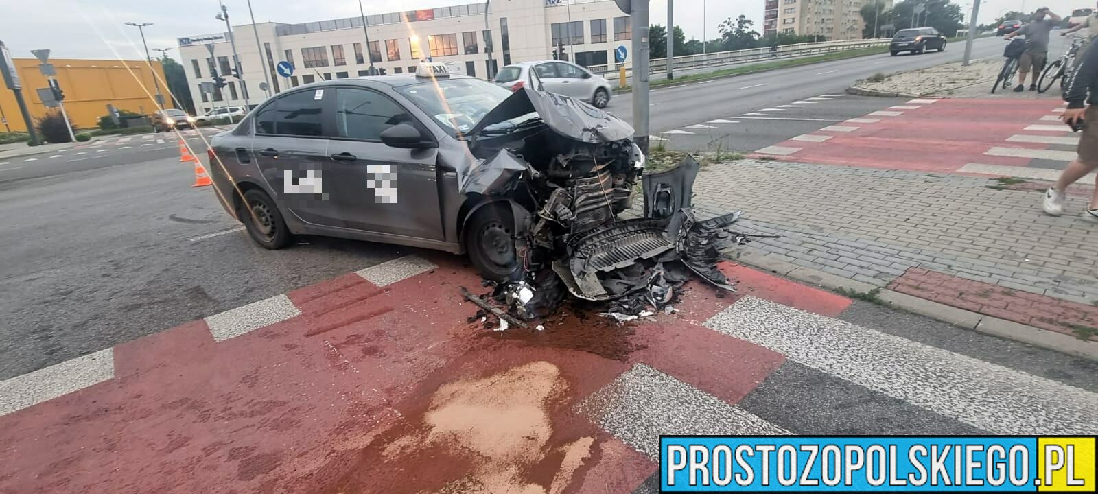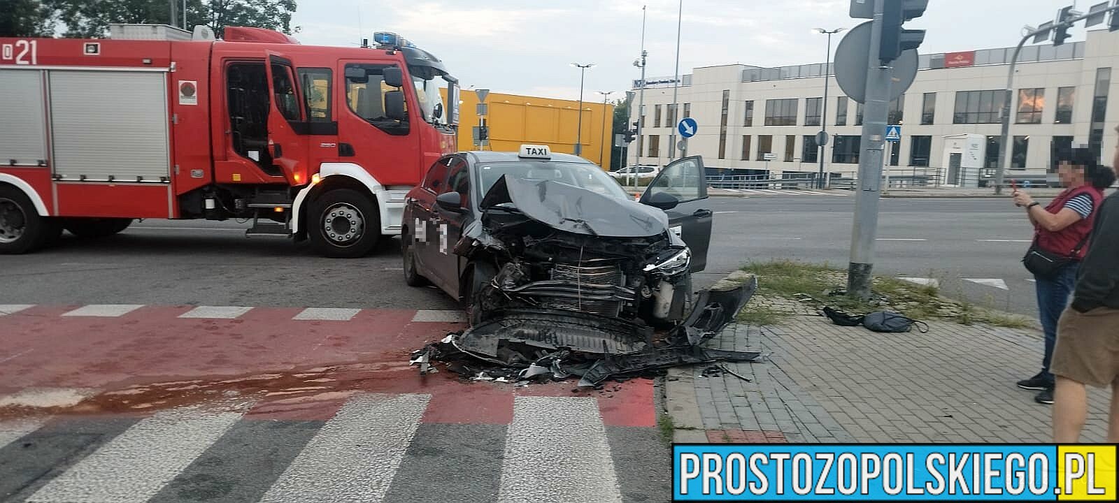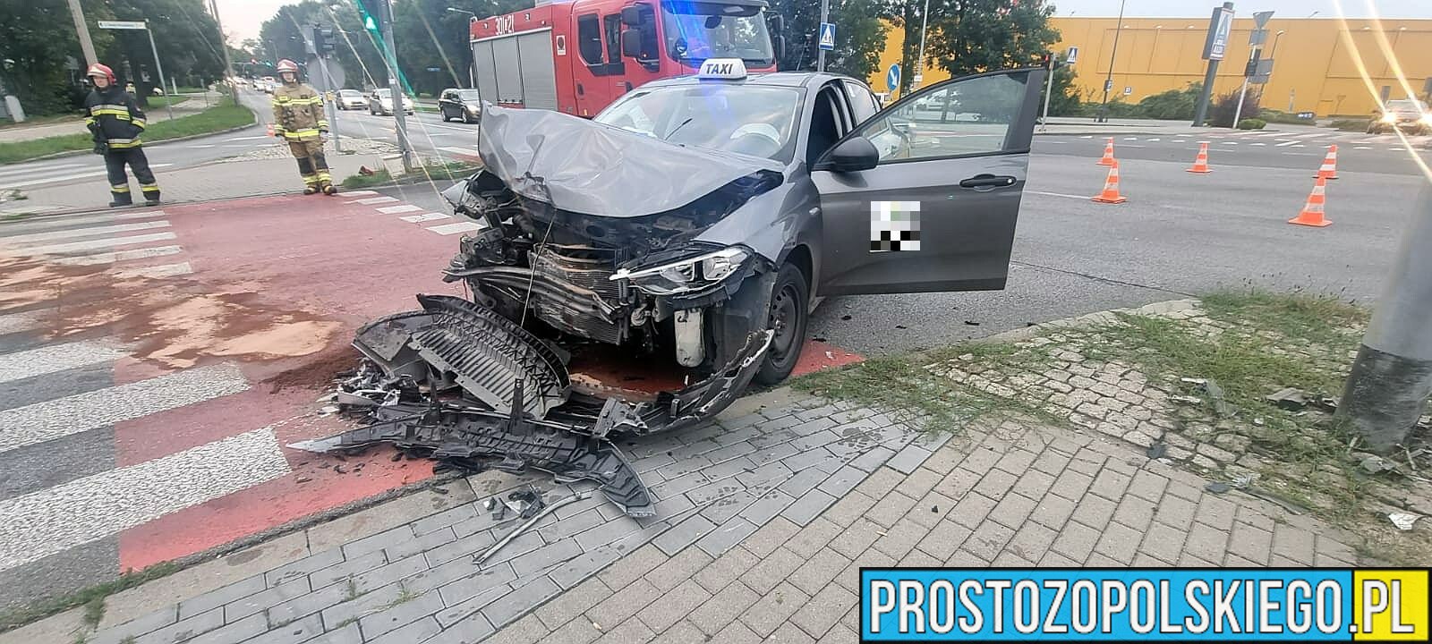Na miejscu były zastępy straży z JRG 1 Opole, policja i ZRM. Kierujący taksówką został ukarany mandatem karnym 1500 zł i 10 punktami.