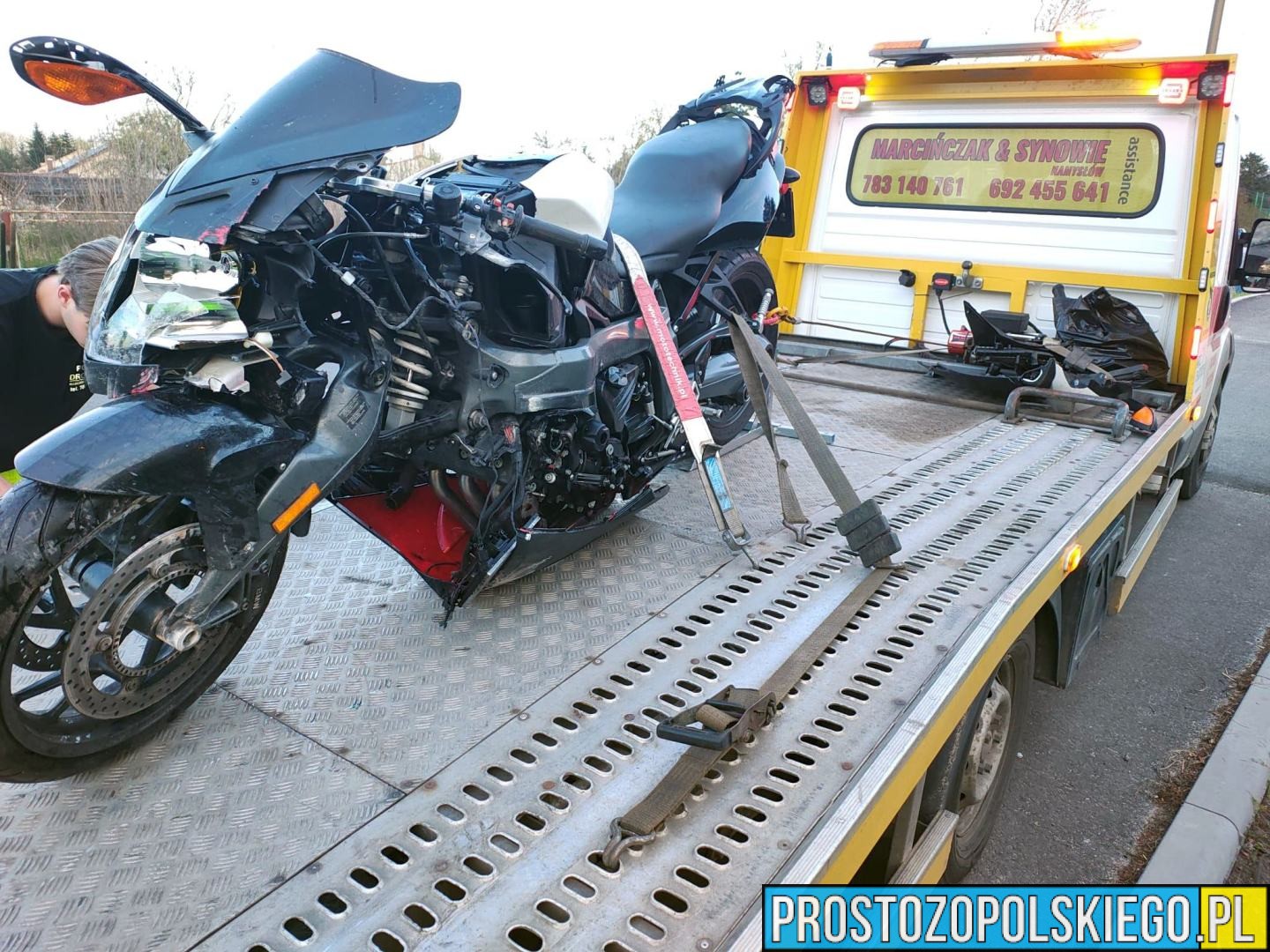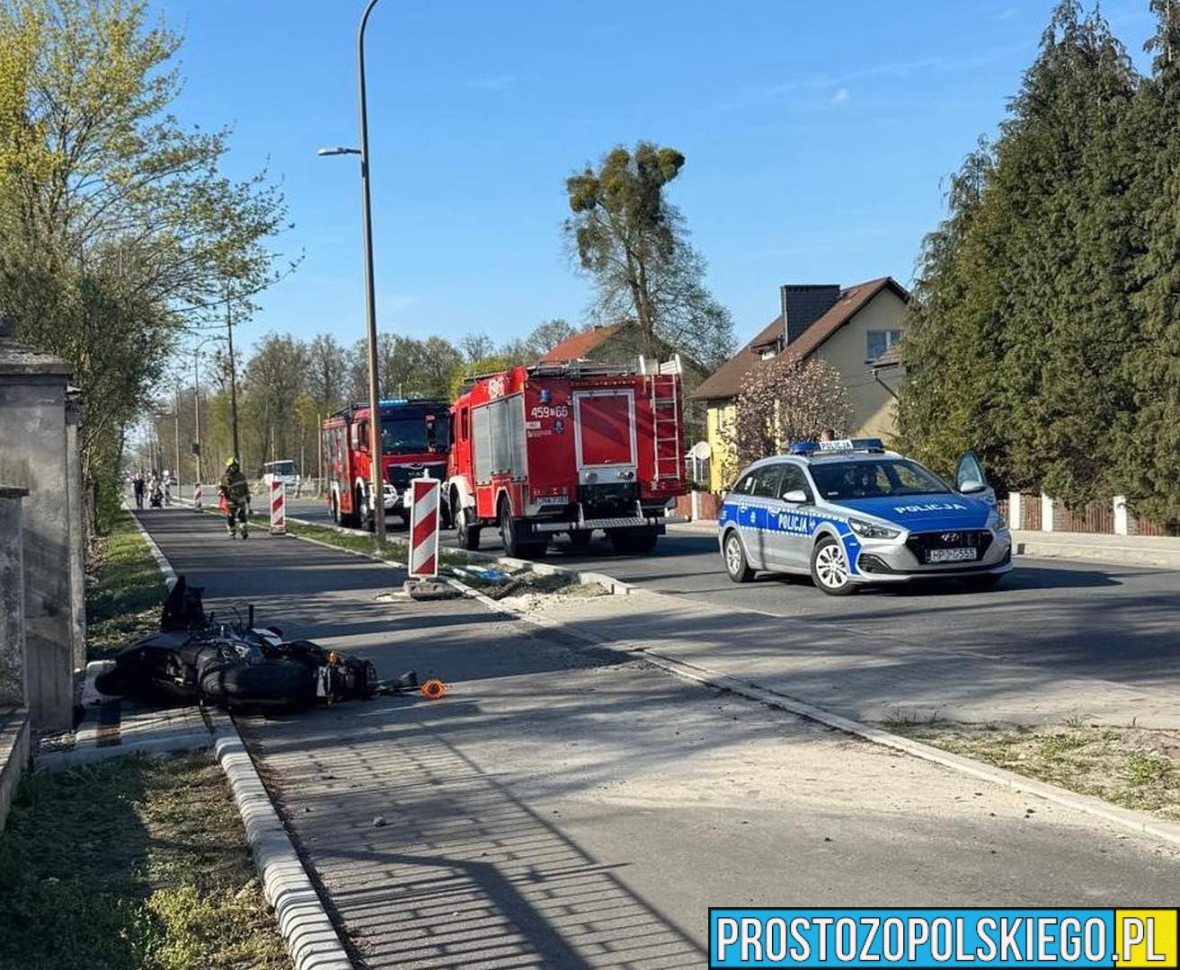 W wyniku zdarzenia 50-letni kierujący motocyklem doznał obrażeń ciała i został przetransportowany do szpitala przez Zespół Ratownictwa Medycznego.