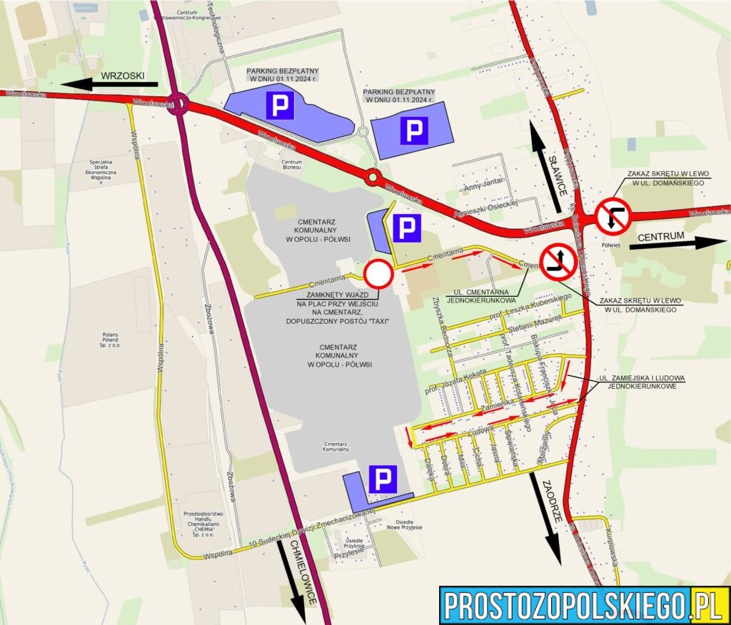 Od czwartku 31 października do soboty 2 listopada w rejonie cmentarza komunalnego na Półwsi w Opolu będzie obowiązywała tymczasowa organizacja ruchu. Zasady pozostają takie same jak w roku ubiegłym.