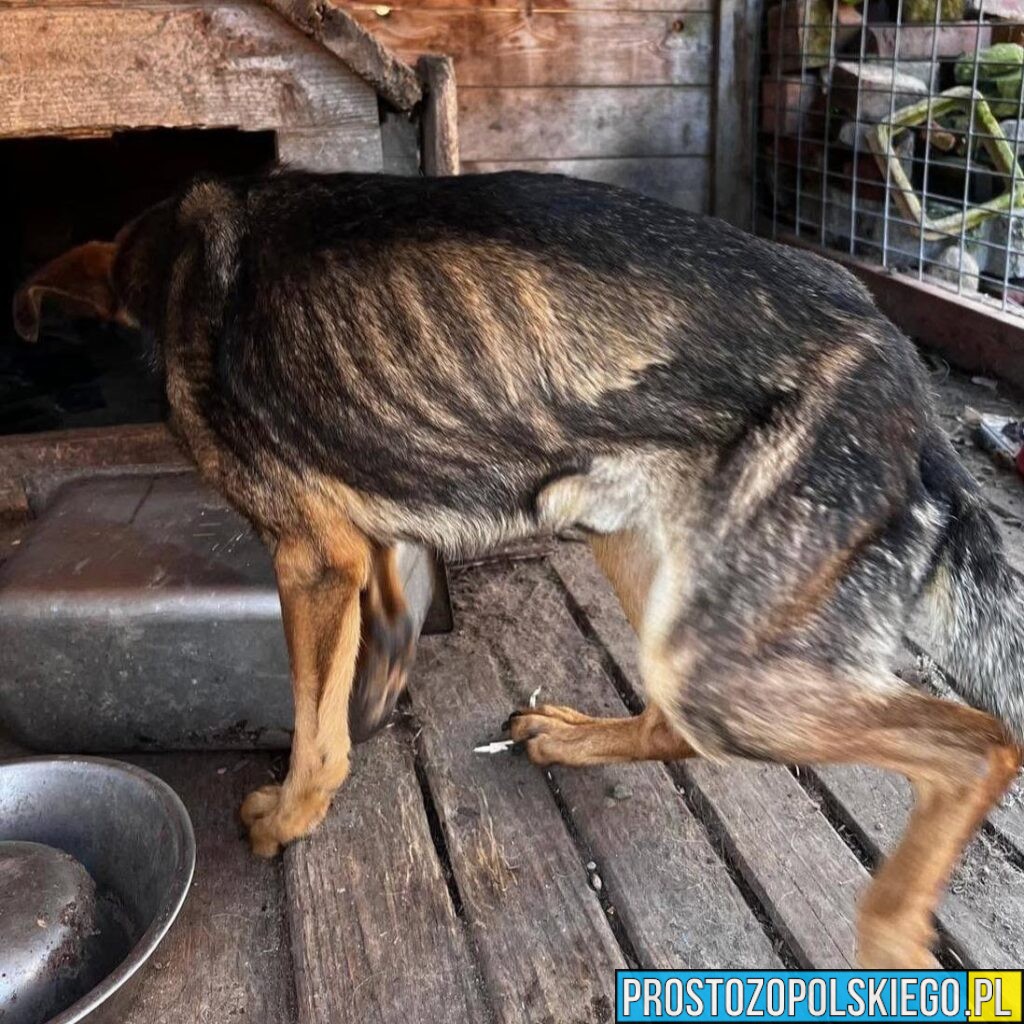 Do interwencji doszło w listopadzie na terenie powiatu kluczborskiego. Funkcjonariusze odebrali dwa psy rasy mieszanej, nad którymi opiekę sprawowała 41-letnia mieszkanka regionu. Stan zwierząt nie pozostawiał wątpliwości — czworonogi były skrajnie wychudzone, przebywały w małych kojcach oraz niedocieplonych budach.